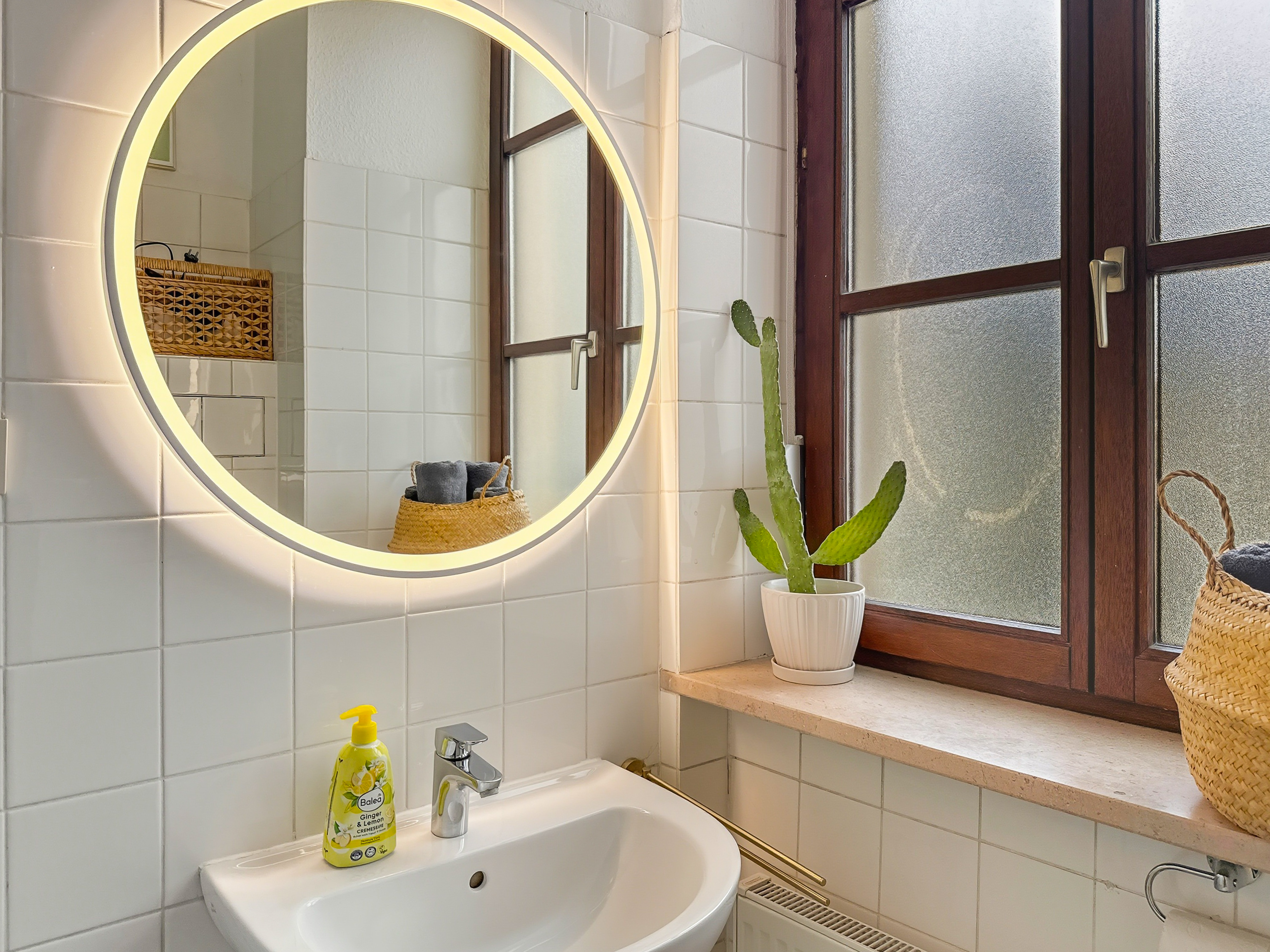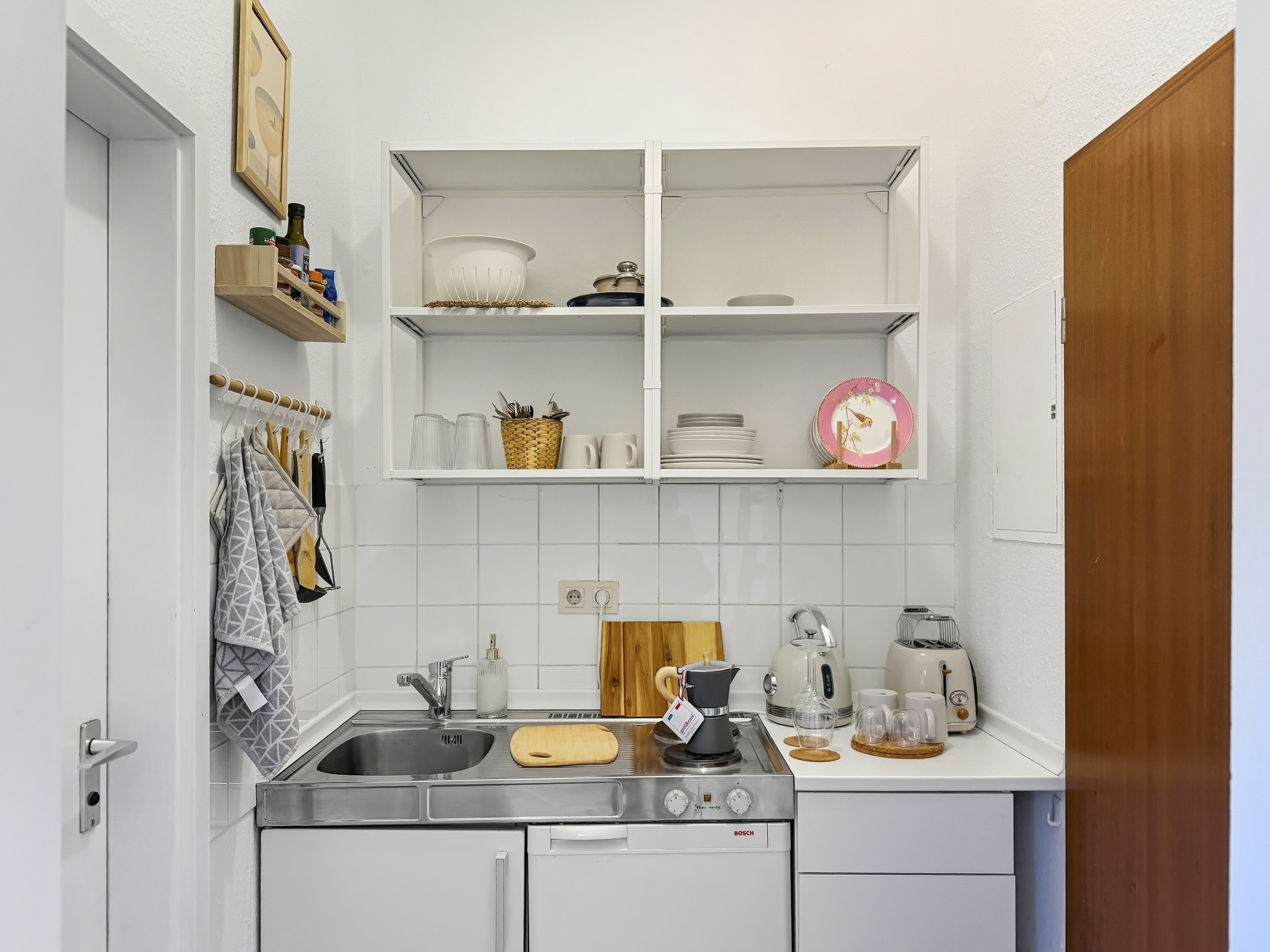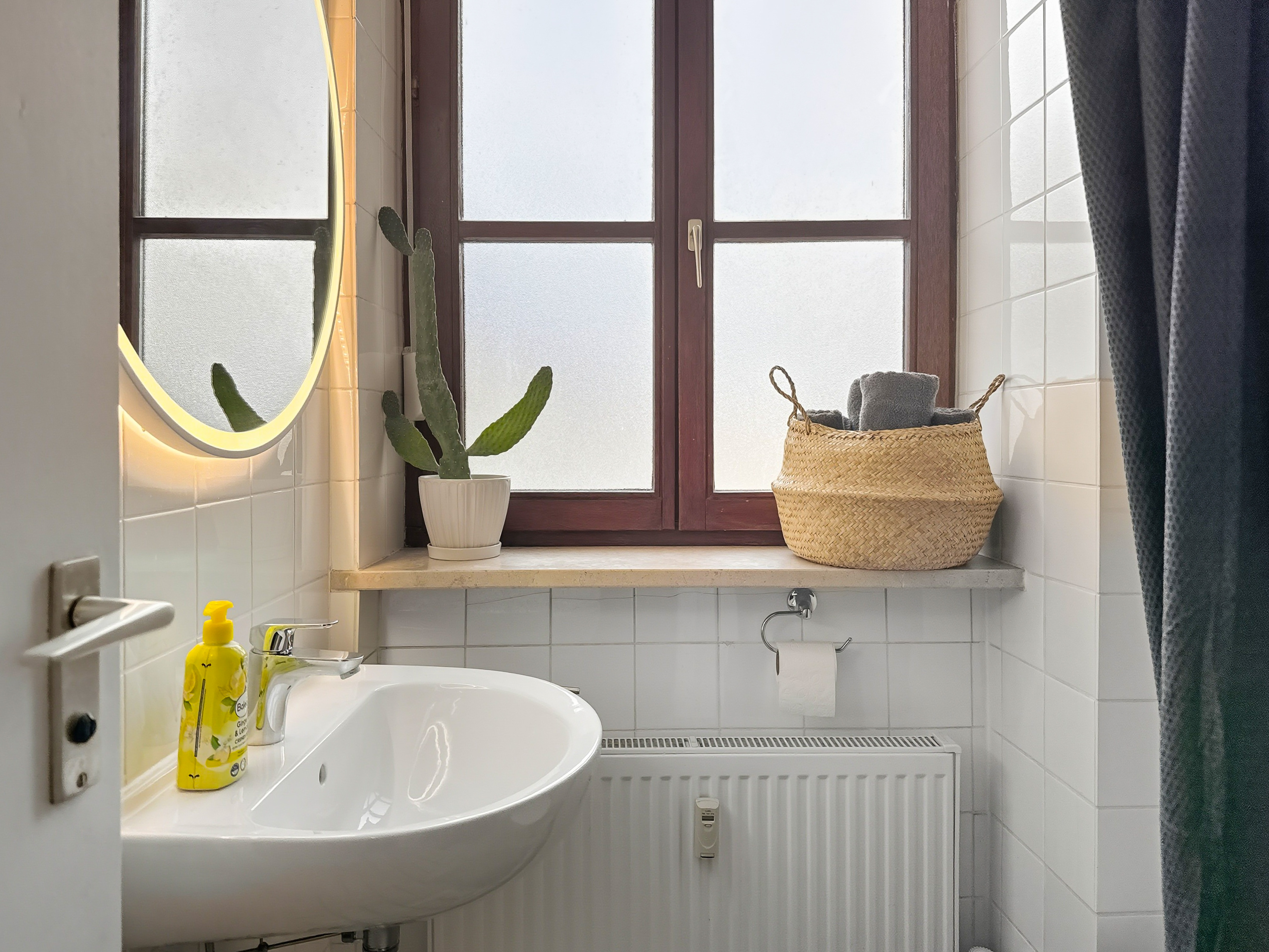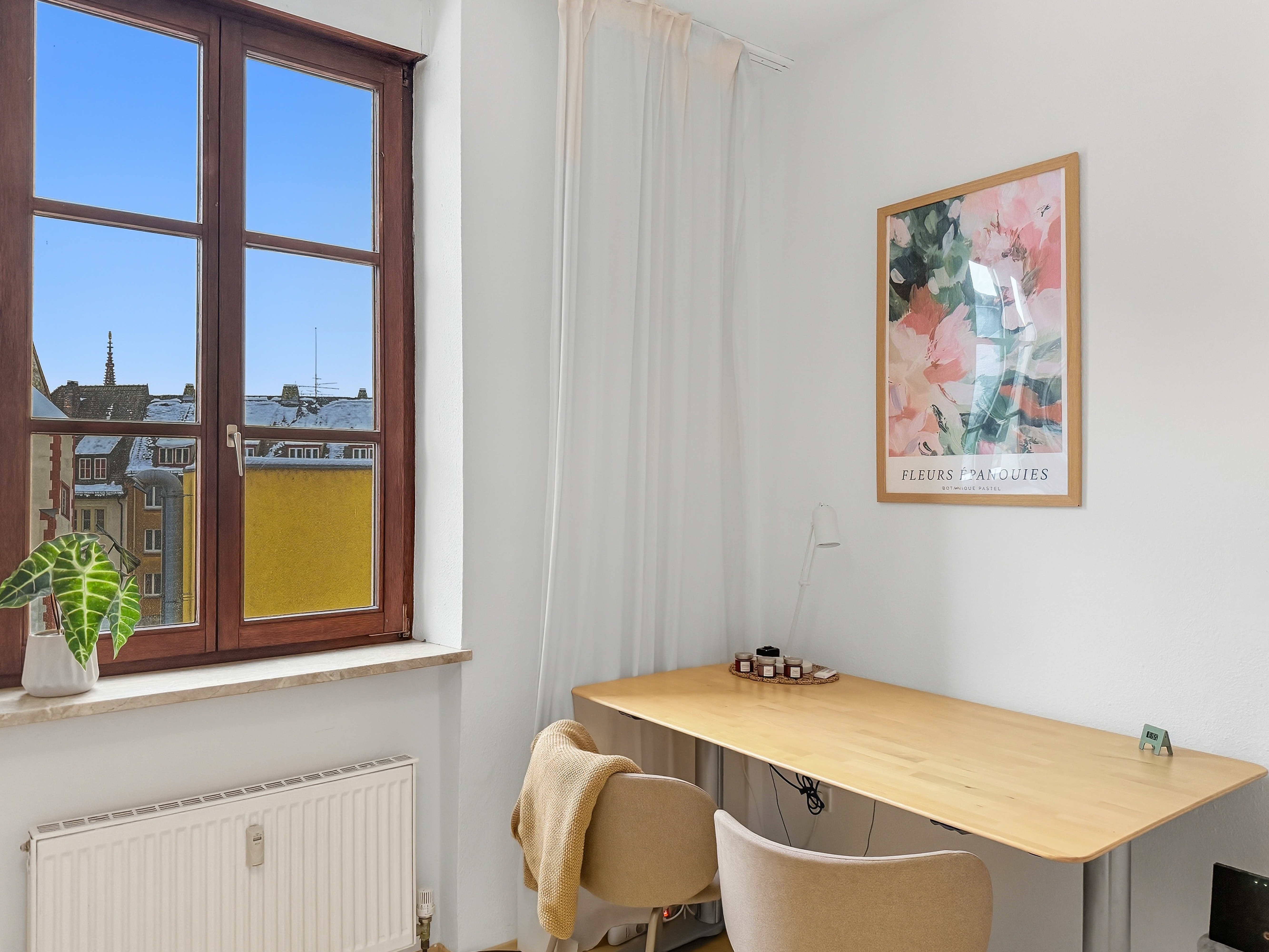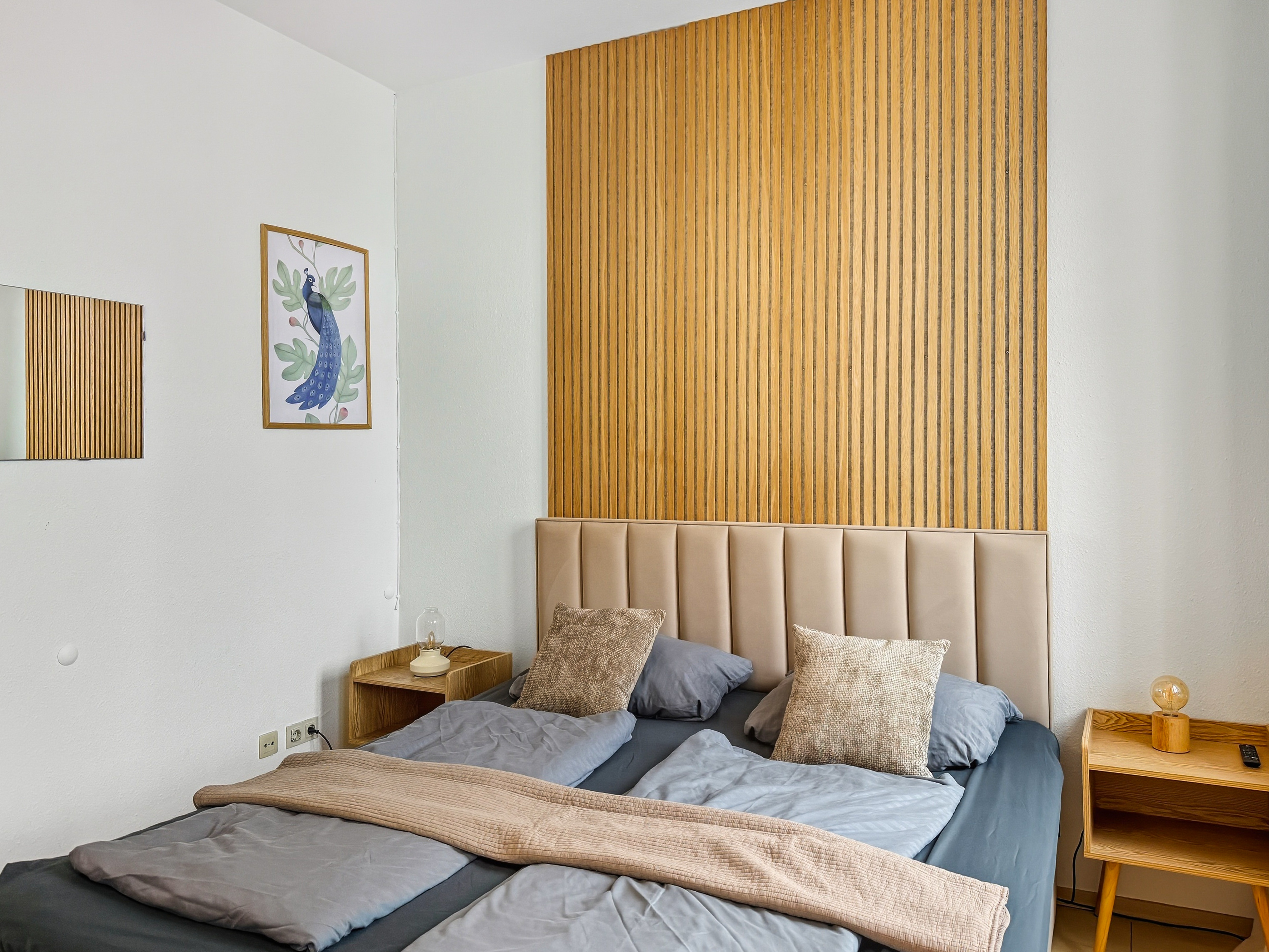 Excellent location for city trips! Cozy studio in a classic old building; approx. 22 m²; 2nd floor without elevator, located directly across from the Congress Center. -180x200 box-spring bed -Desk/dining table -Fully equipped kitchenette -Bathroom with shower -Washing machine available in the building Flexible self check-in with key box >1 min to the Congress Center >3 min to the Main riverside promenade >12 min to the main train station >5 min to the city center