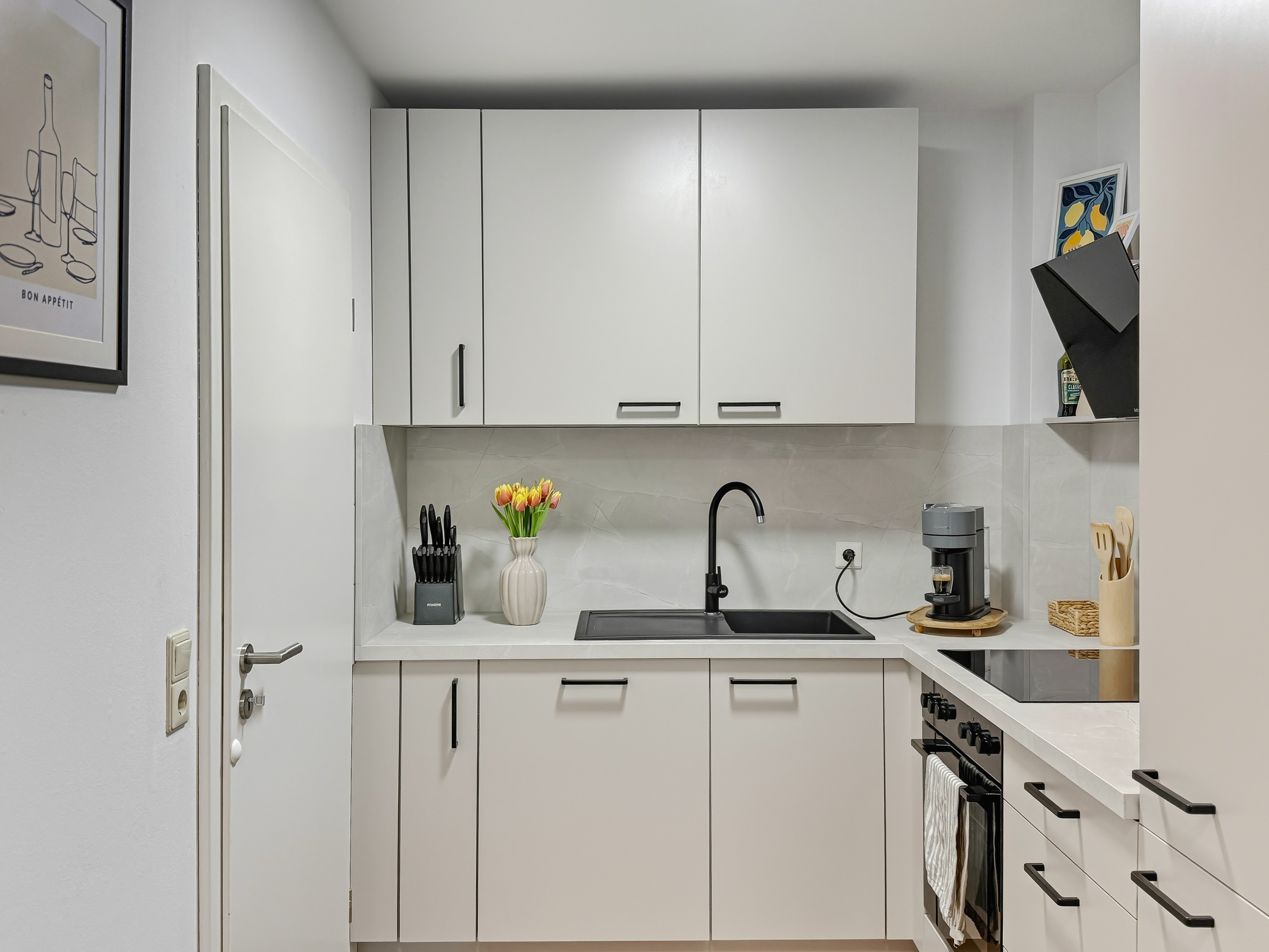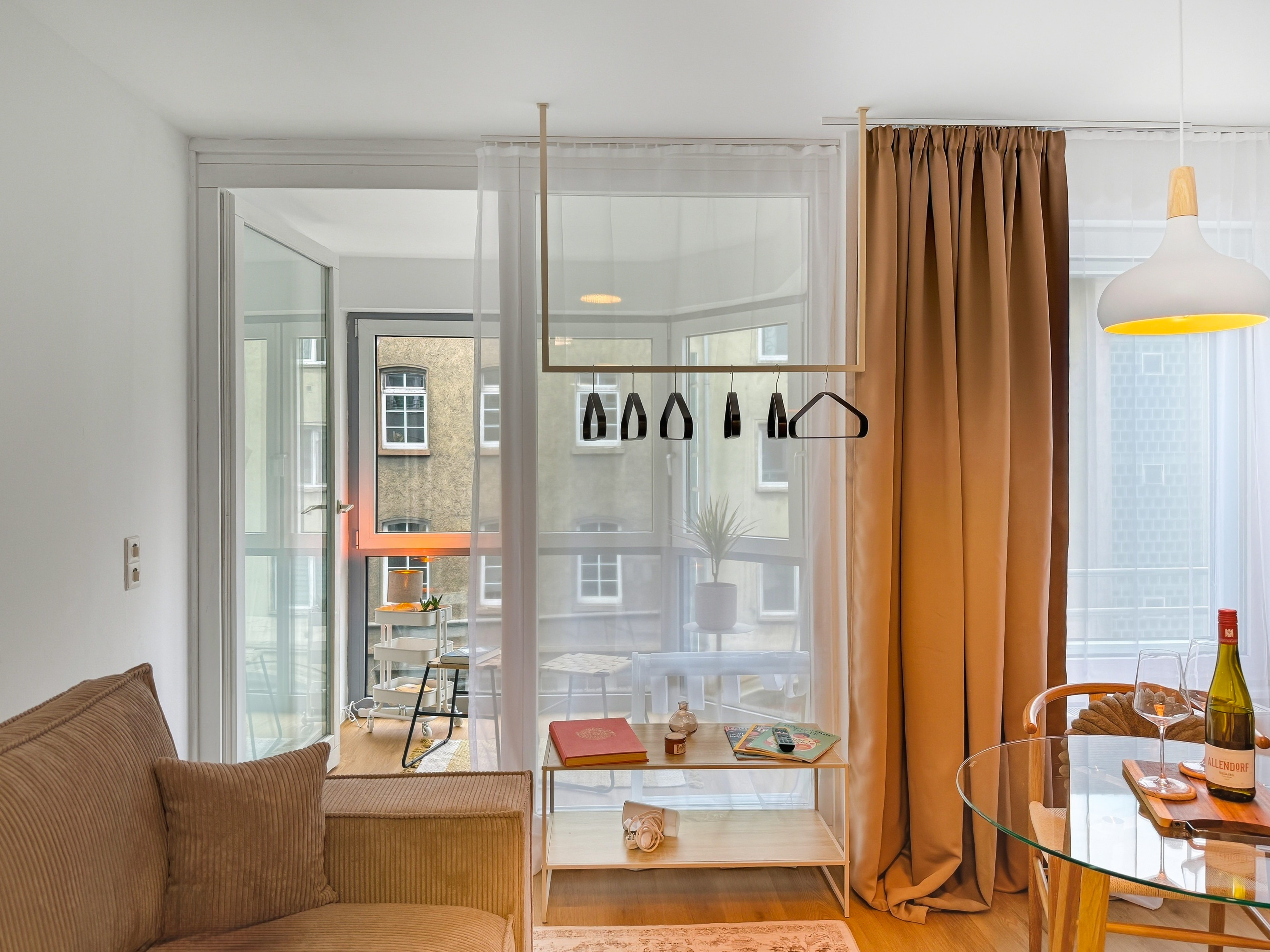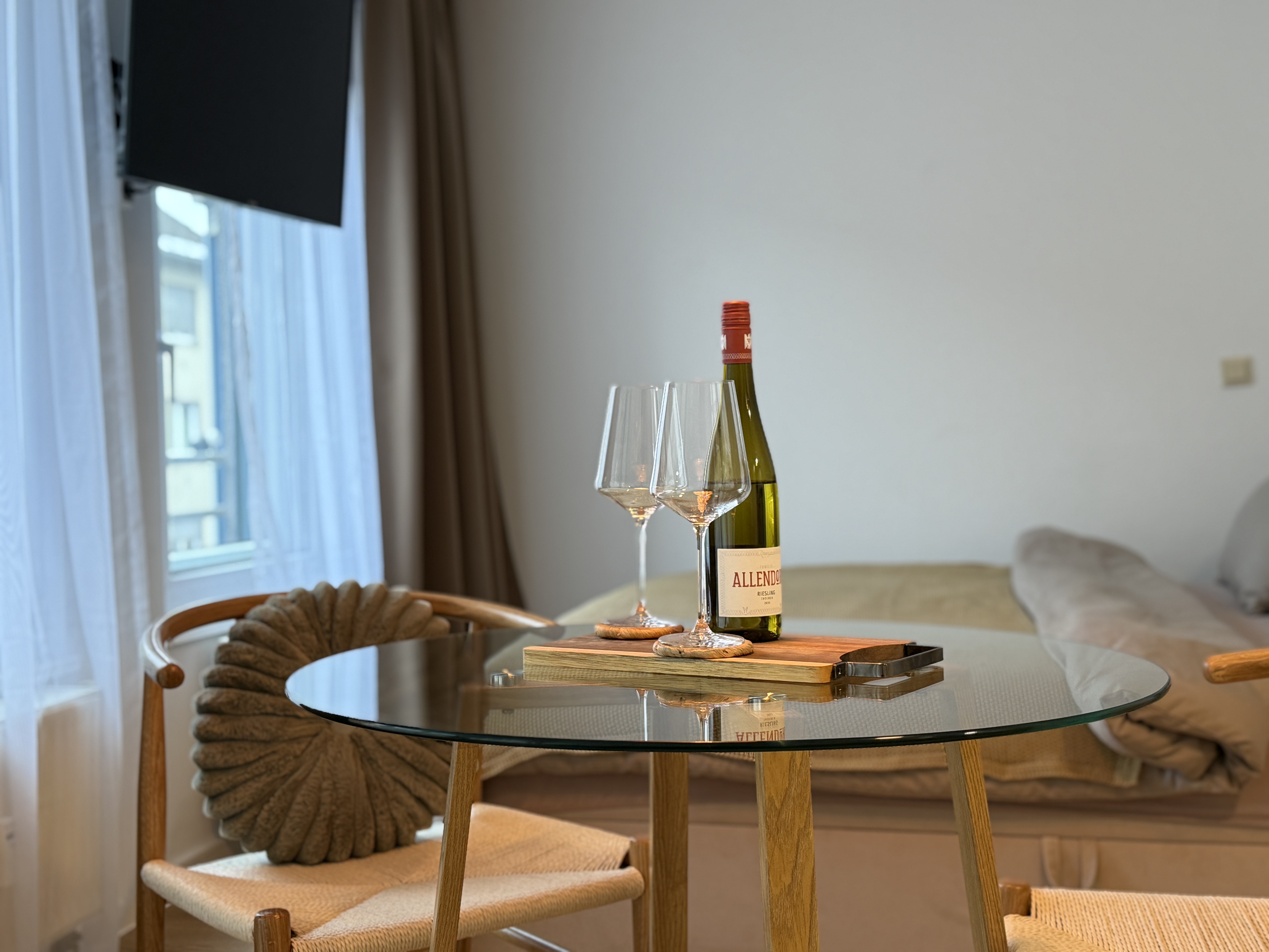 Willkommen in diesem modern eingerichteten Studio-Apartment in Würzburg-Grombühl. Die Wohnung ist hell, funktional und gemütlich zugleich – mit einem offenen Wohnbereich, voll ausgestatteter Küche, Essplatz und einem komfortablen Schlafbereich. Ideal zum Abschalten nach einem Klinik-/Uni-Tag, einem Business-Termin oder einer Tour durch Innenstadt und Weinberge. Dank der zweifachen Verglasung bleibt es innen angenehm ruhig. Der digitale Self-Check-in macht die Anreise flexibel, und der kostenlose Tiefgaragenstellplatz sorgt für entspanntes Parken – inklusive Aufzug direkt bis zur Wohnung. ★ WOHN- & ESSBEREICH ★ Lehn dich zurück, genieße den Smart-TV oder plane den nächsten Tag bei einem Glas Wein am Esstisch. ✔ Gemütliches Schlafsofa (als Schlafplatz nutzbar) ✔ Smart-TV ✔ Esstisch mit Sitzplätzen ✔ Helle, moderne Atmosphäre ★ KÜCHE ★ Die Küche ist komplett ausgestattet – perfekt für Frühstück, Home-Office-Lunch oder ein richtiges Abendessen. ✔ 4 Kochfelder ✔ Backofen ✔ Spülmaschine ✔ Nespresso-Kaffeemaschine ✔ Wasserkocher ✔ Kühl-/Gefrierkombination ✔ Töpfe, Pfannen, Geschirr & Besteck ✔ Gläser & Weingläser ★ SCHLAFEN – BETT + SOFA ★ Nach einem langen Tag wartet ein hochwertiges Kingsize-Bett auf dich – und bei Bedarf bietet das Sofa zusätzlichen Schlafplatz. ✔ Kingsize-Bett (180 cm) ✔ Frische Bettwäsche & Kissen ✔ Stauraum & Kleiderbügel ✔ Verdunkelungsmöglichkeit (je nach Bereich) ★ BAD ★ Das Badezimmer ist praktisch und komfortabel – mit Badewanne und Waschmaschine für längere Aufenthalte. ✔ Badewanne ✔ Waschmaschine ✔ Handtücher ✔ Föhn ✔ Spiegel & Waschbecken ✔ WC ✔ Basis-Toilettenartikel ★ PARKEN & ANREISE ★ Stressfrei ankommen – auch mit Gepäck. ✔ Kostenloser Tiefgaragenstellplatz Nr. 77 (Ebene -2) ✔ Aufzug von der Tiefgarage direkt bis zur Wohnung ✔ Zusätzliche Parkmöglichkeit auf Ebene -1 (öffentlich) ✔ Einfahrtshöhe Tiefgarage: max. 2,0 m ✔ Digitaler Self-Check-in (Link & Code) Wenn Fragen auftauchen, einfach kurz melden – wir helfen schnell weiter und möchten, dass der Aufenthalt unkompliziert und angenehm wird.