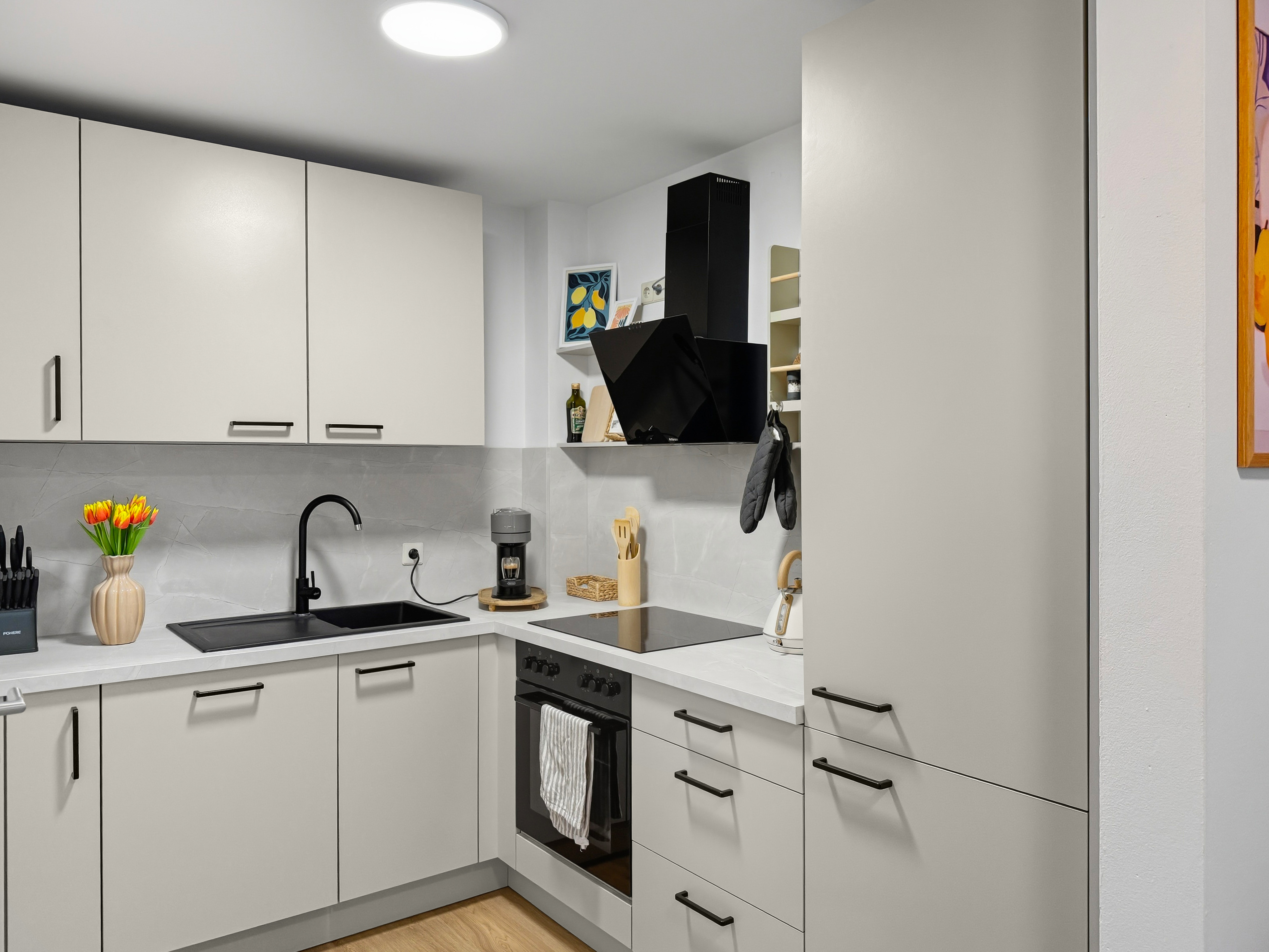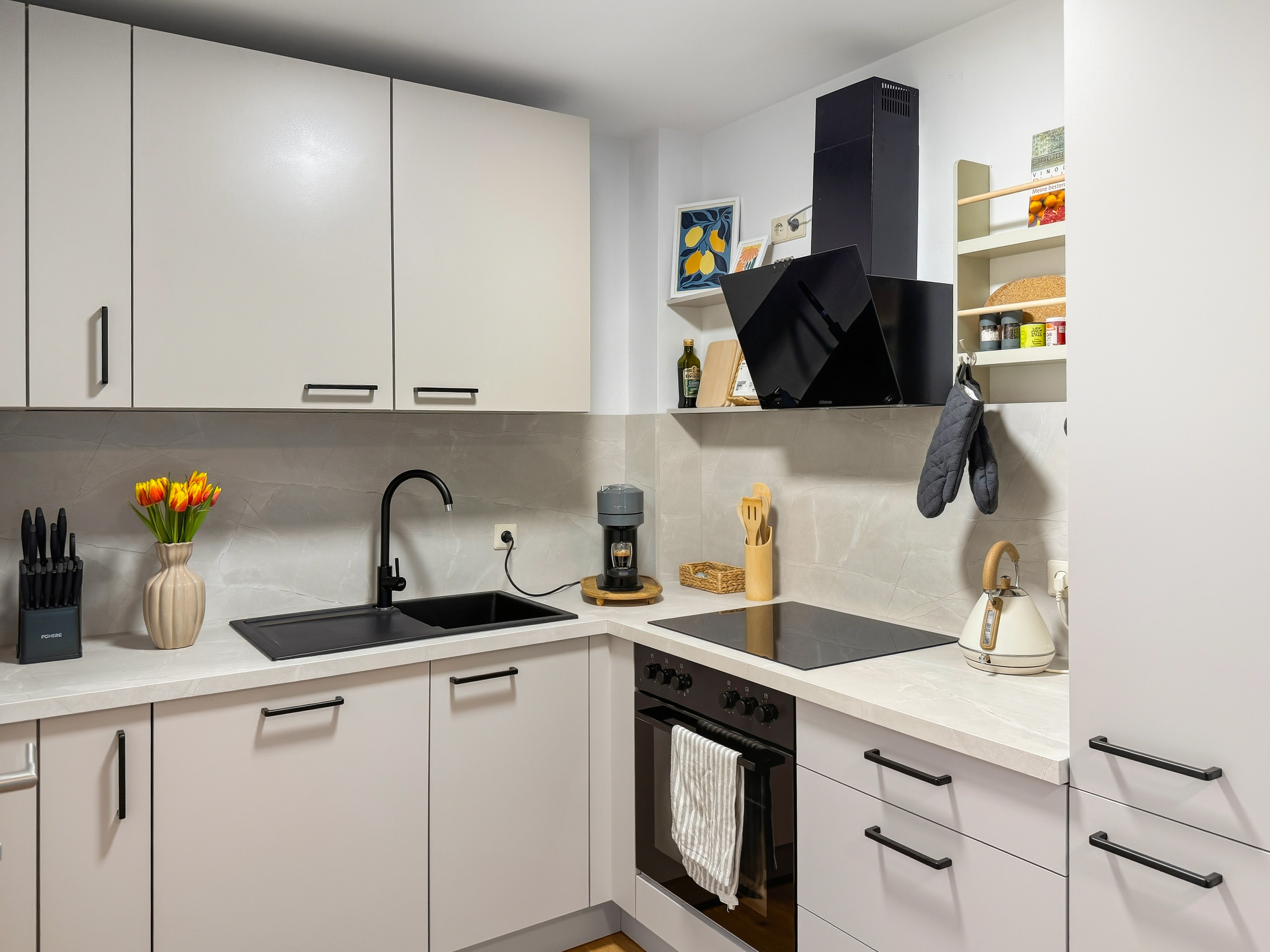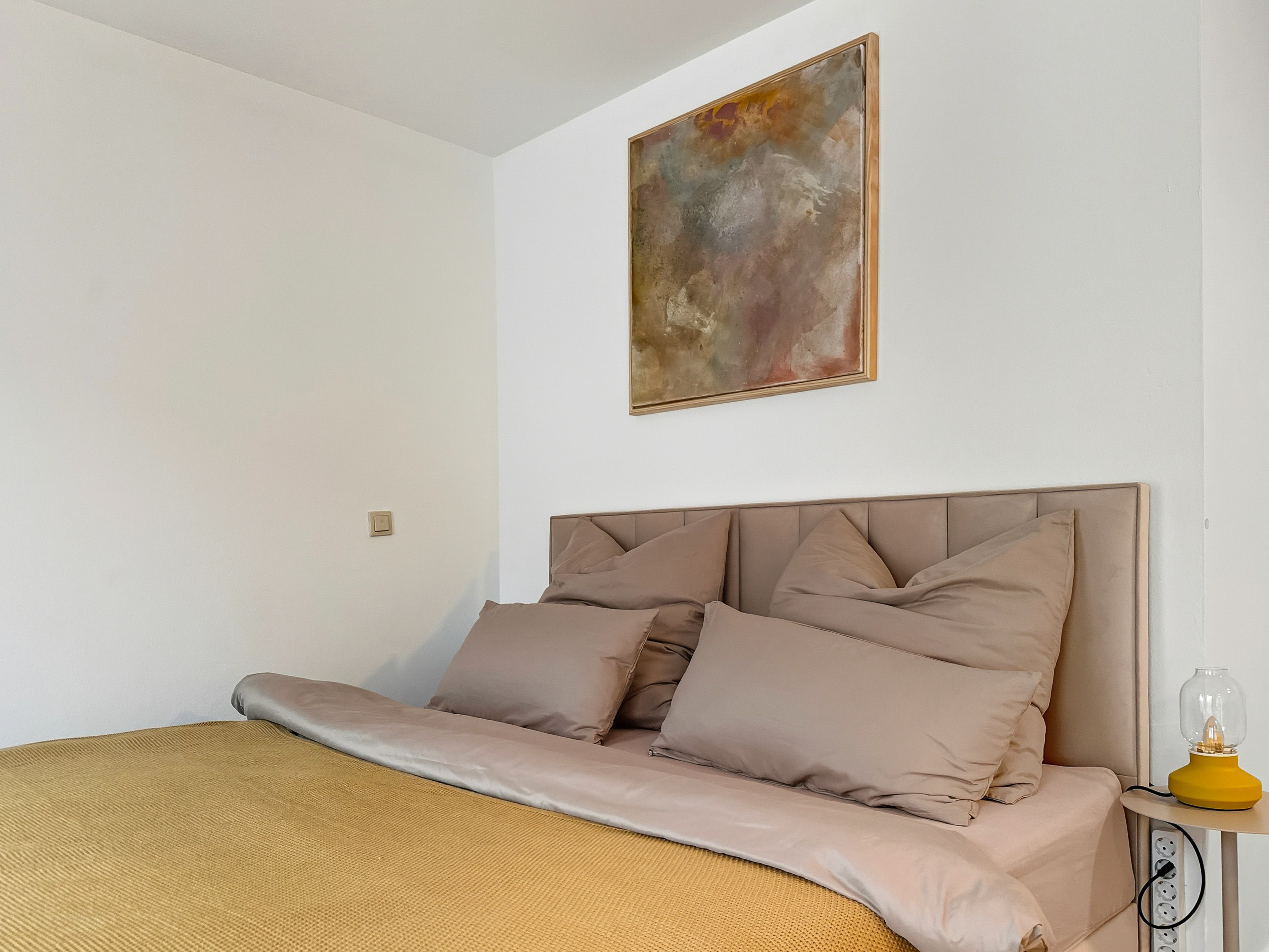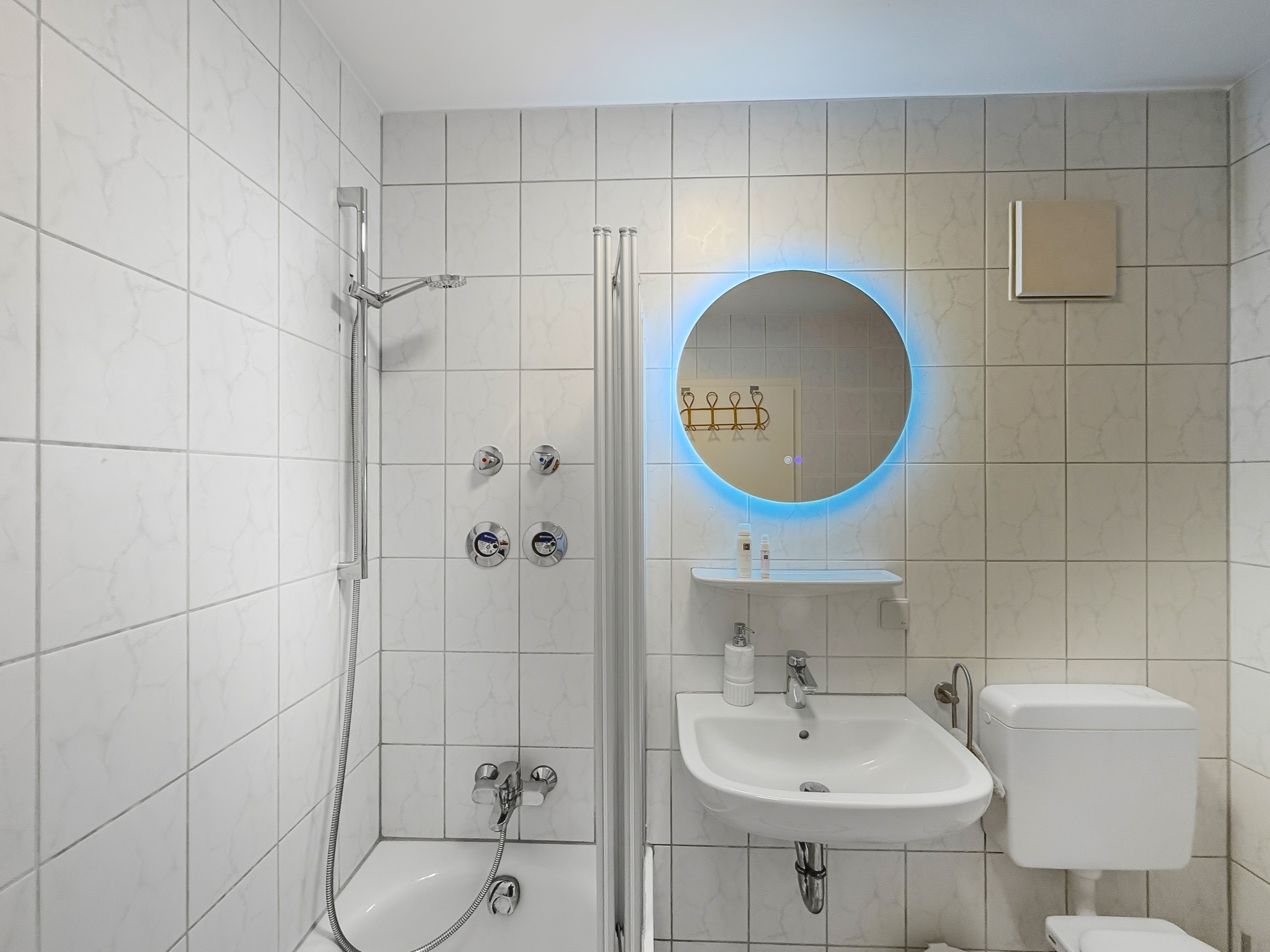 Willkommen in diesem modern eingerichteten Studio-Apartment in Würzburg-Grombühl. Die Wohnung ist hell, funktional und gemütlich zugleich – mit einem offenen Wohnbereich, voll ausgestatteter Küche, Essplatz und einem komfortablen Schlafbereich. Ideal zum Abschalten nach einem Klinik-/Uni-Tag, einem Business-Termin oder einer Tour durch Innenstadt und Weinberge. Dank der zweifachen Verglasung bleibt es innen angenehm ruhig. Der digitale Self-Check-in macht die Anreise flexibel, und der kostenlose Tiefgaragenstellplatz sorgt für entspanntes Parken – inklusive Aufzug direkt bis zur Wohnung. ★ WOHN- & ESSBEREICH ★ Lehn dich zurück, genieße den Smart-TV oder plane den nächsten Tag bei einem Glas Wein am Esstisch. ✔ Gemütliches Schlafsofa (als Schlafplatz nutzbar) ✔ Smart-TV ✔ Esstisch mit Sitzplätzen ✔ Helle, moderne Atmosphäre ★ KÜCHE ★ Die Küche ist komplett ausgestattet – perfekt für Frühstück, Home-Office-Lunch oder ein richtiges Abendessen. ✔ 4 Kochfelder ✔ Backofen ✔ Spülmaschine ✔ Nespresso-Kaffeemaschine ✔ Wasserkocher ✔ Kühl-/Gefrierkombination ✔ Töpfe, Pfannen, Geschirr & Besteck ✔ Gläser & Weingläser ★ SCHLAFEN – BETT + SOFA ★ Nach einem langen Tag wartet ein hochwertiges Kingsize-Bett auf dich – und bei Bedarf bietet das Sofa zusätzlichen Schlafplatz. ✔ Kingsize-Bett (180 cm) ✔ Frische Bettwäsche & Kissen ✔ Stauraum & Kleiderbügel ✔ Verdunkelungsmöglichkeit (je nach Bereich) ★ BAD ★ Das Badezimmer ist praktisch und komfortabel – mit Badewanne und Waschmaschine für längere Aufenthalte. ✔ Badewanne ✔ Waschmaschine ✔ Handtücher ✔ Föhn ✔ Spiegel & Waschbecken ✔ WC ✔ Basis-Toilettenartikel ★ PARKEN & ANREISE ★ Stressfrei ankommen – auch mit Gepäck. ✔ Kostenloser Tiefgaragenstellplatz Nr. 77 (Ebene -2) ✔ Aufzug von der Tiefgarage direkt bis zur Wohnung ✔ Zusätzliche Parkmöglichkeit auf Ebene -1 (öffentlich) ✔ Einfahrtshöhe Tiefgarage: max. 2,0 m ✔ Digitaler Self-Check-in (Link & Code) Wenn Fragen auftauchen, einfach kurz melden – wir helfen schnell weiter und möchten, dass der Aufenthalt unkompliziert und angenehm wird.